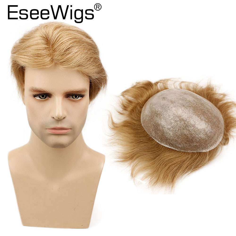 Eseewigs Color #21 Human Hair Toupee Brazilian Remy Straight Hair Skin PU Hiar Replacement Wigs For Men