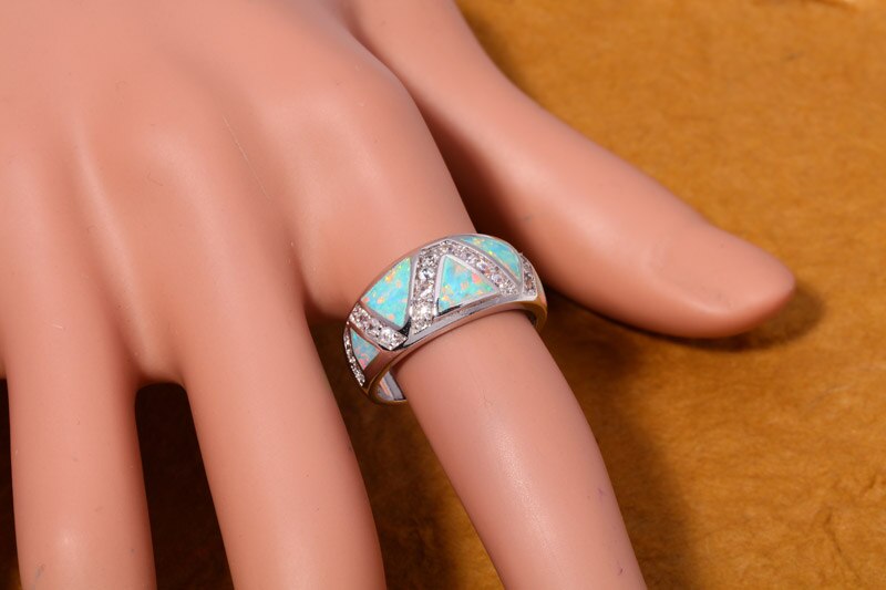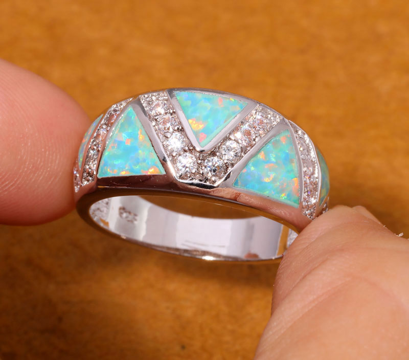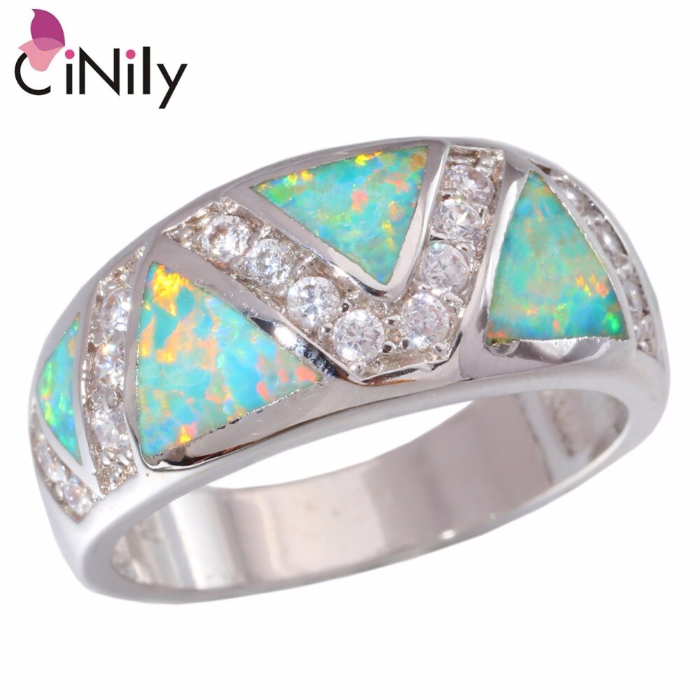 Fashion ! Unique & Beautiful & Wholesale & Retail For Women Jewelry Green Fire Opal & Cubic Zirconia Silver Ring Size 7 8 OJ8007