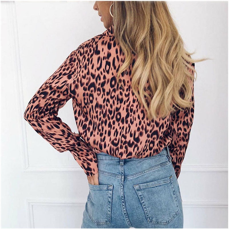 Fashion Women OL V Neck Leopard Shirt Elegant Long Sleeve Loose Dames Top Party Blouse Streetwear chemise femme Plus Size New