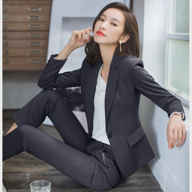 Female Elegant Business Uniform 2 Piece Set Pant Suits Ladies Women’s Business office Work Wear Blazers Trouser Sets With Jacket
