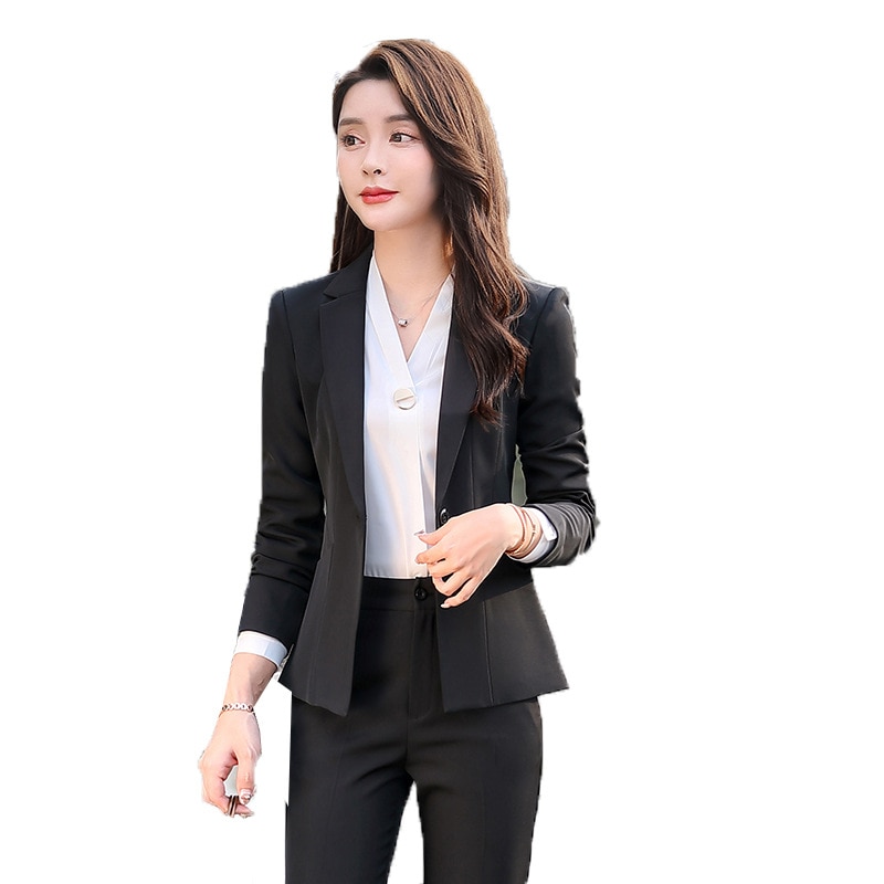 Female Elegant Formal Office Work Pant Suits 2 Pieces Set for Women’s Suit Set Blazer and Trouser Pant Business Uniform Clothing