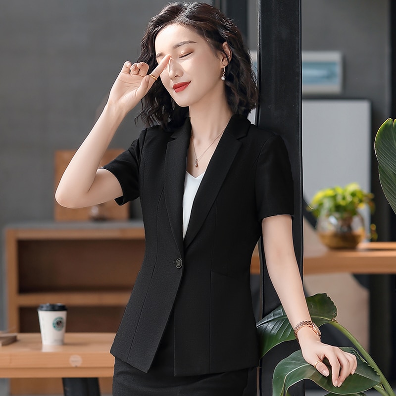 Female Elegant Formal Office Work Wear 2020 Women Black Blazers and Jackets Short Sleeve Black Office Ladies Clothes OL Style