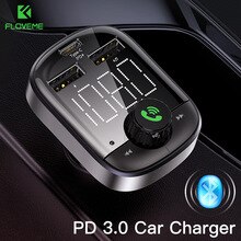 FLOVEME Quick Charge 3.0 USB Car Charger QC3.0 Bluetooth FM Transmitter Car Kit For iPhone 11 Pro Max 3.6A Fast PD Phone Charger
