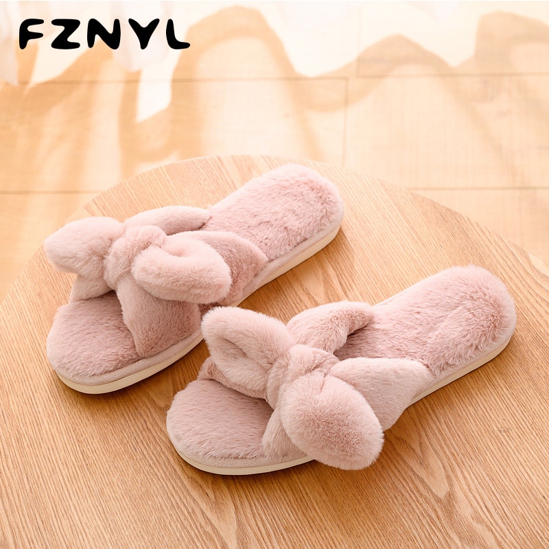 FZNYL 2019 Winter Warm Faux Fur Slides Women Fluffy Flat House Home Slippers Ladies Indoor Furry Female Shoes Big Size 36-41
