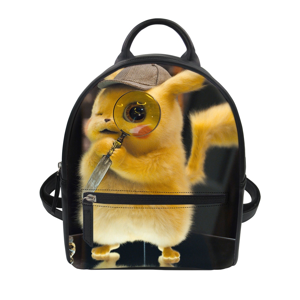 HaoYun Women’s PU Leather Mini Backpack Detective Pikachu Design Casual Small Daypacks Girls Travel Mochila Feminine Trendy