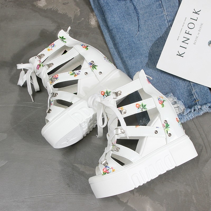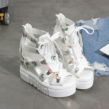 High-heeled Sandals Woman 2020 Summer New Print Cross Strap Roman Shoes Ladies Fish Mouth Muffin Bottom Wedge High Heels Women