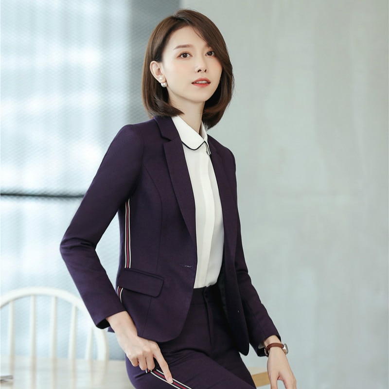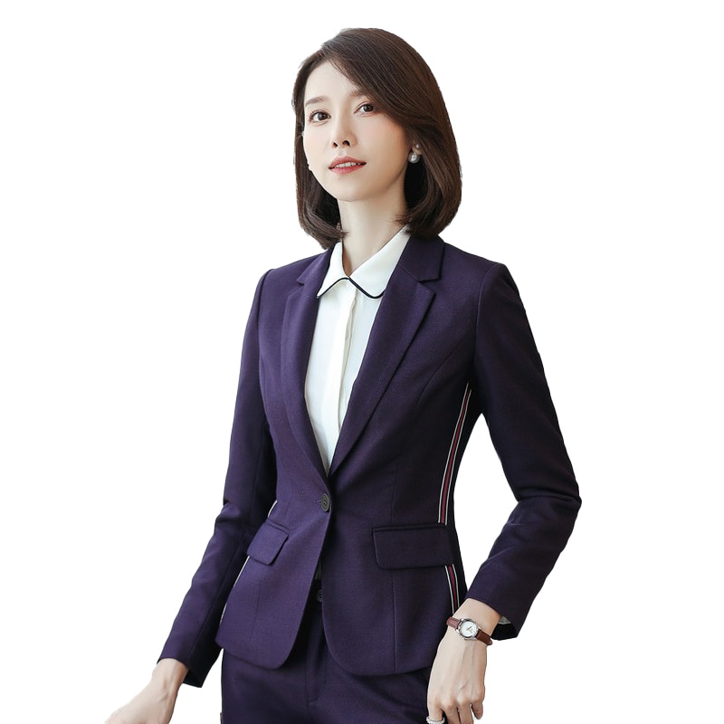 High Quality Fiber Fashion Ladies Purple Blazers Women Jackets Female Elegant Formal Office Work Wear OL Styles Tops and Coats