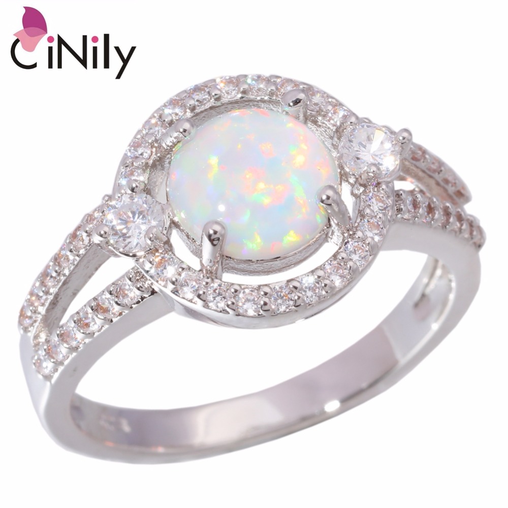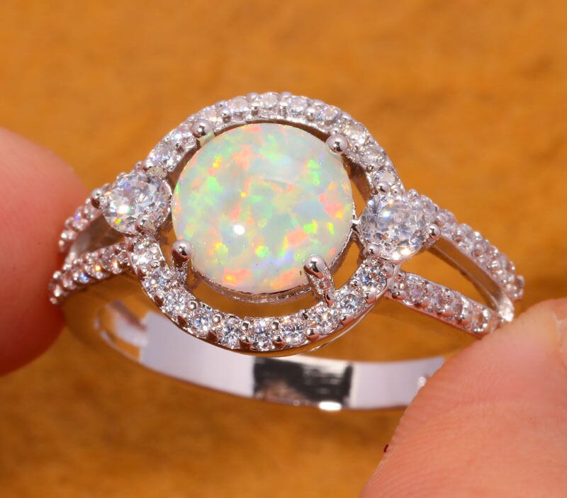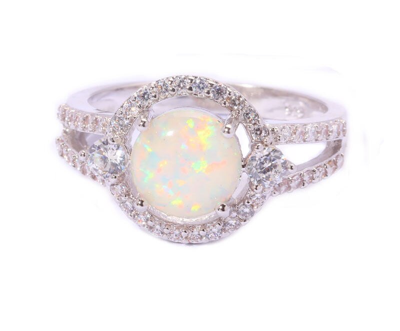 Hot Sell Wholesale For Women Jewelry White Fire Opal & White Topaz 925 Sterling Silver Plated Ring Size 7 / 7.75 / 8 / 9 OJ5472