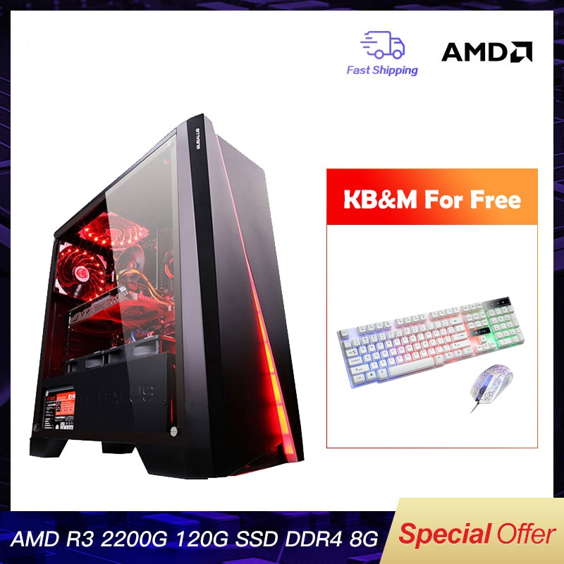 IPASON CHEAP Gaming PC Quad-Core AMD Ryzen3 2200G/DDR4 8G RAM/120G SSD/1T+240G SSD Desktop Gaming Computers