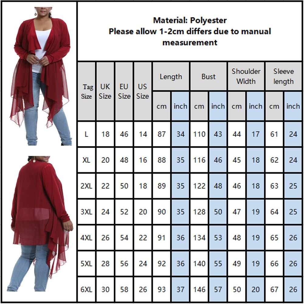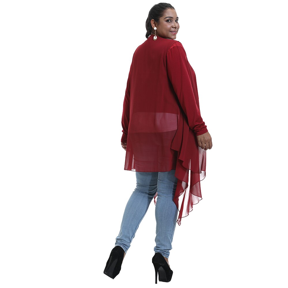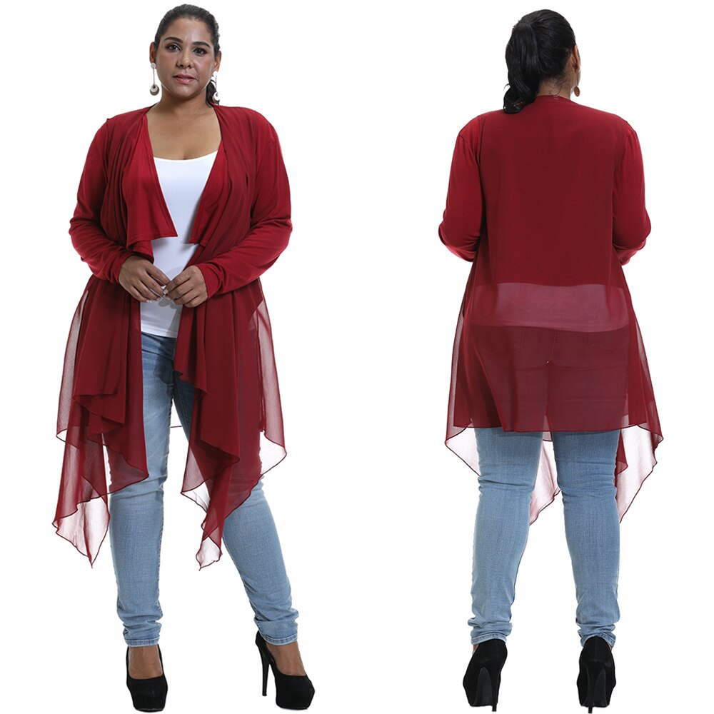 Irregular Hem Hong Sleeve Jacket Women Shawl Cozy Large size Chiffon Cardigan Casual Fashion Loose Asymmetric Coat L-5XL D30