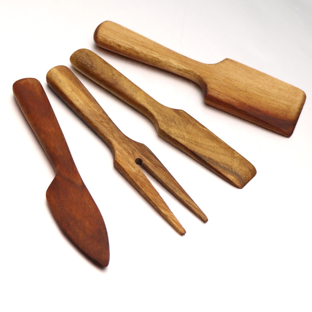 Jaswehome 4pcs Acacia Wood Cheese Knife Set Wooden Cheese Knife Cheese Slicer Cutter Wooden Knives Tablewares