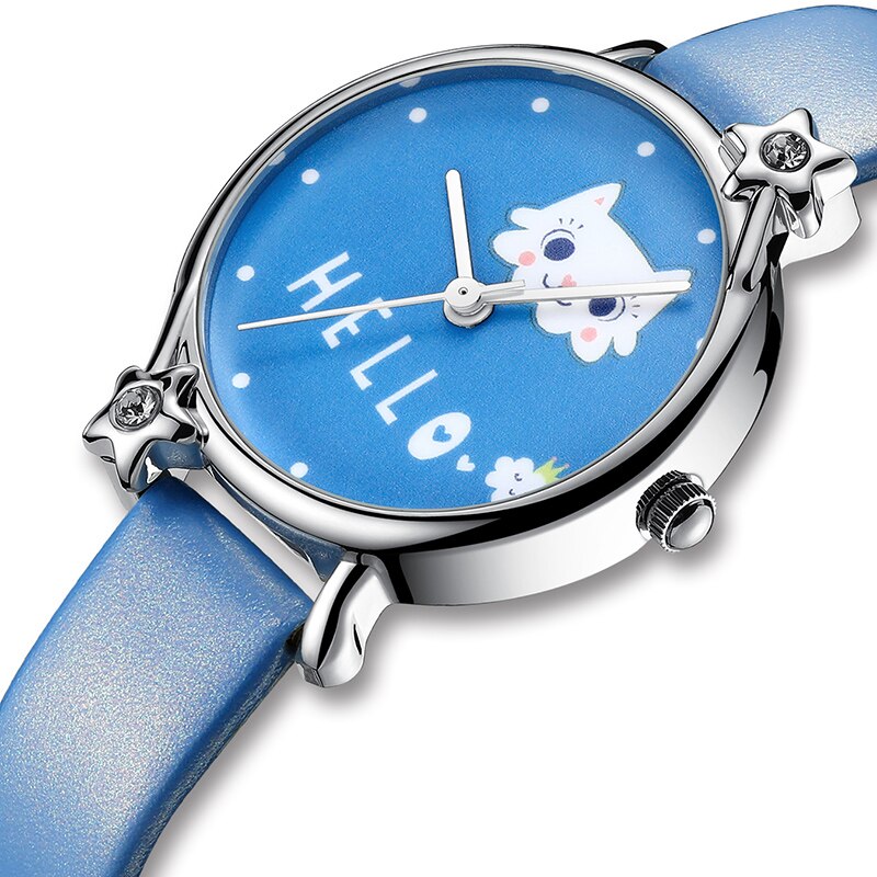 KDM Lovely Girl Watch Cute Cat Child Watches Waterproof Kids Watch Genuine Leather Kid Children Wristwatch Student Girls Clock