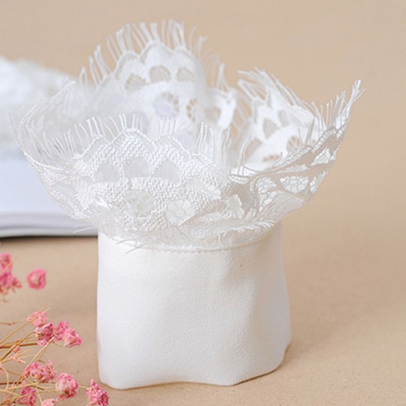 Korean Women Handmade Fake Sleeves Crochet Hollow Out Eyelash Lace Panel Horn Cuffs Sweater Coat Decor Wrist Warmers Accessory