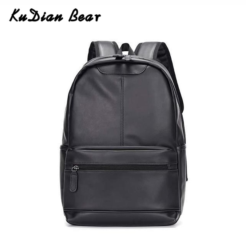 KUDIAN BEAR PU Leather Men Backpack Teenager Laptop Bags Waterproof Multi-function Black School Bags Travel Mochila BIX310 PM49