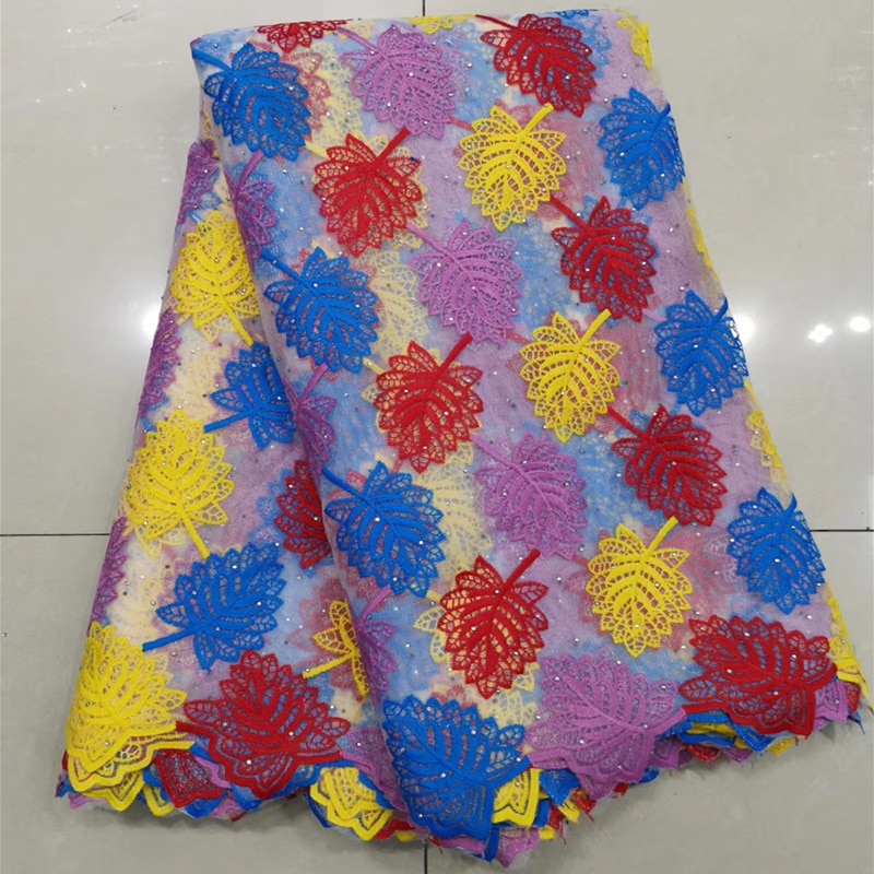 Latest African Lace Fabric 2020 Embroidered Nigerian High Quality Bridal Tulle Lace Fabric with Beads For Wedding Party Dress