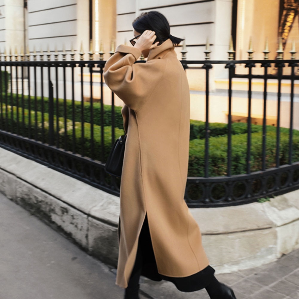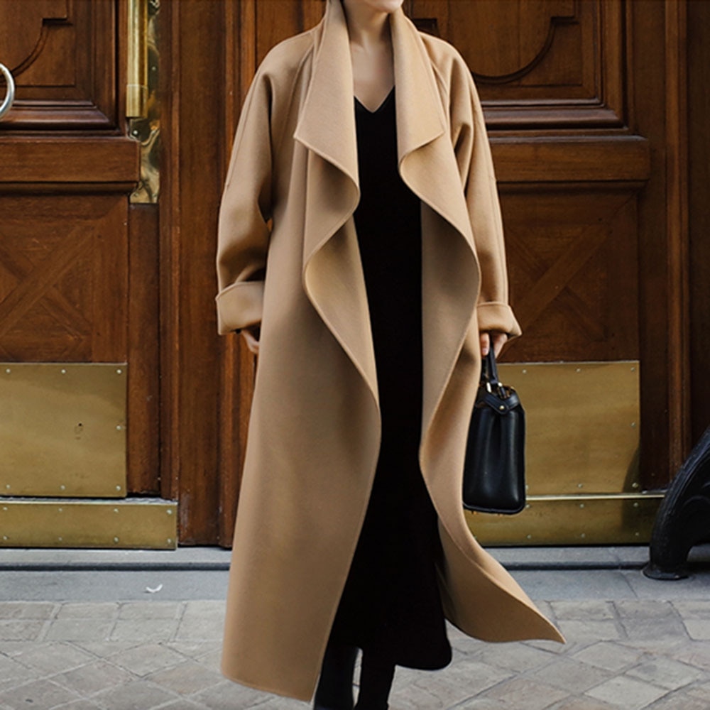 Long Wool Blends Women Spring Autumn Solid Camel Korean Office Ladies Retro Causal Overcoat OL Warm Winter Coats Minimalist