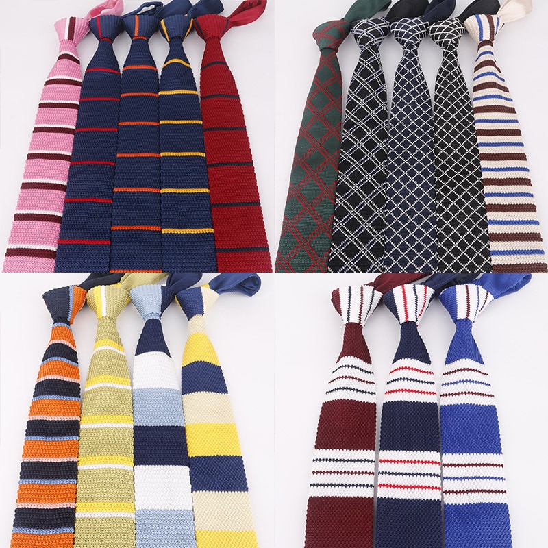 Matagorda Men’s Tie Knitting Necktie Crew Cut 5Cm Knit Tie Stripes Lattice Neckwear Formal Tie Wedding Gift Groomsmen Gravata