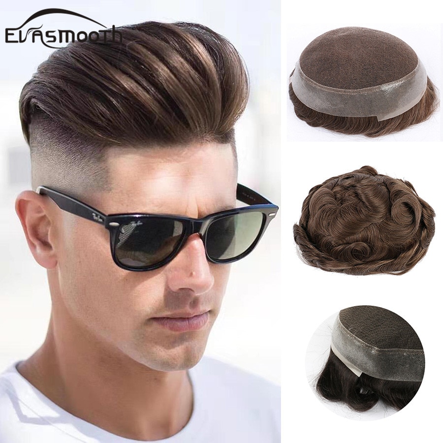 Men Human Hair Durable Replacement Systems Mono Lace Pu Wig Indian Remy Hair Toupee Mens Natural Human Wig Men Hairpieces