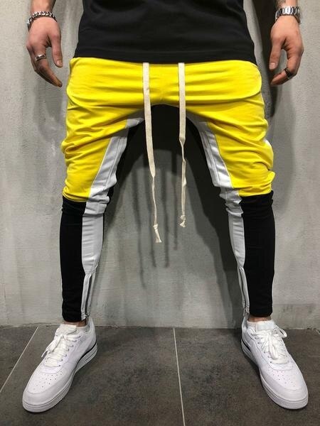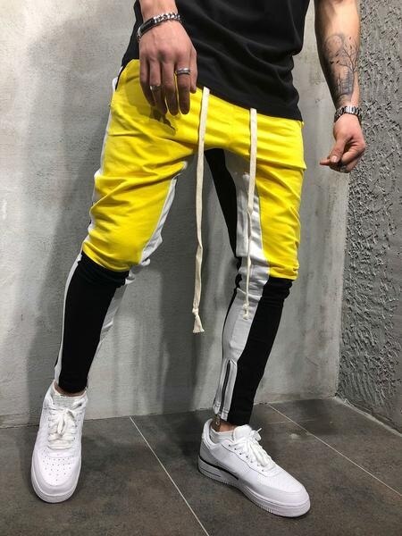 Men Patchwork Sweatpants Red Black Spliced Skinny Trousers Mens Elastic Waist Hiphop Rap Street Wear Causal Joggers Sweat Pants