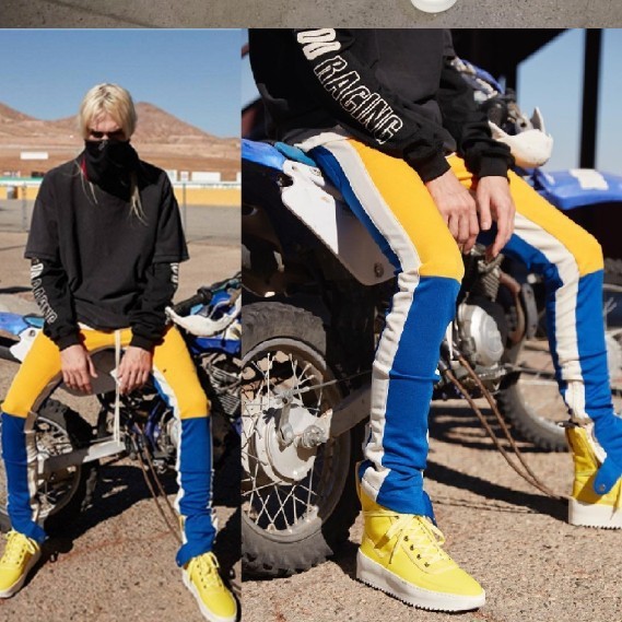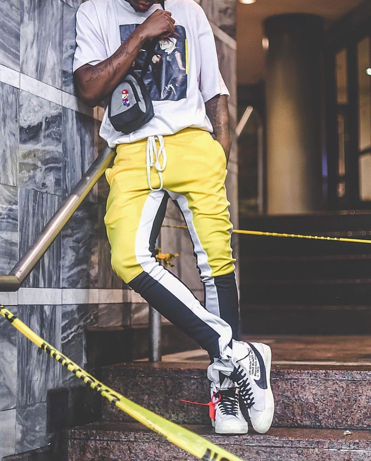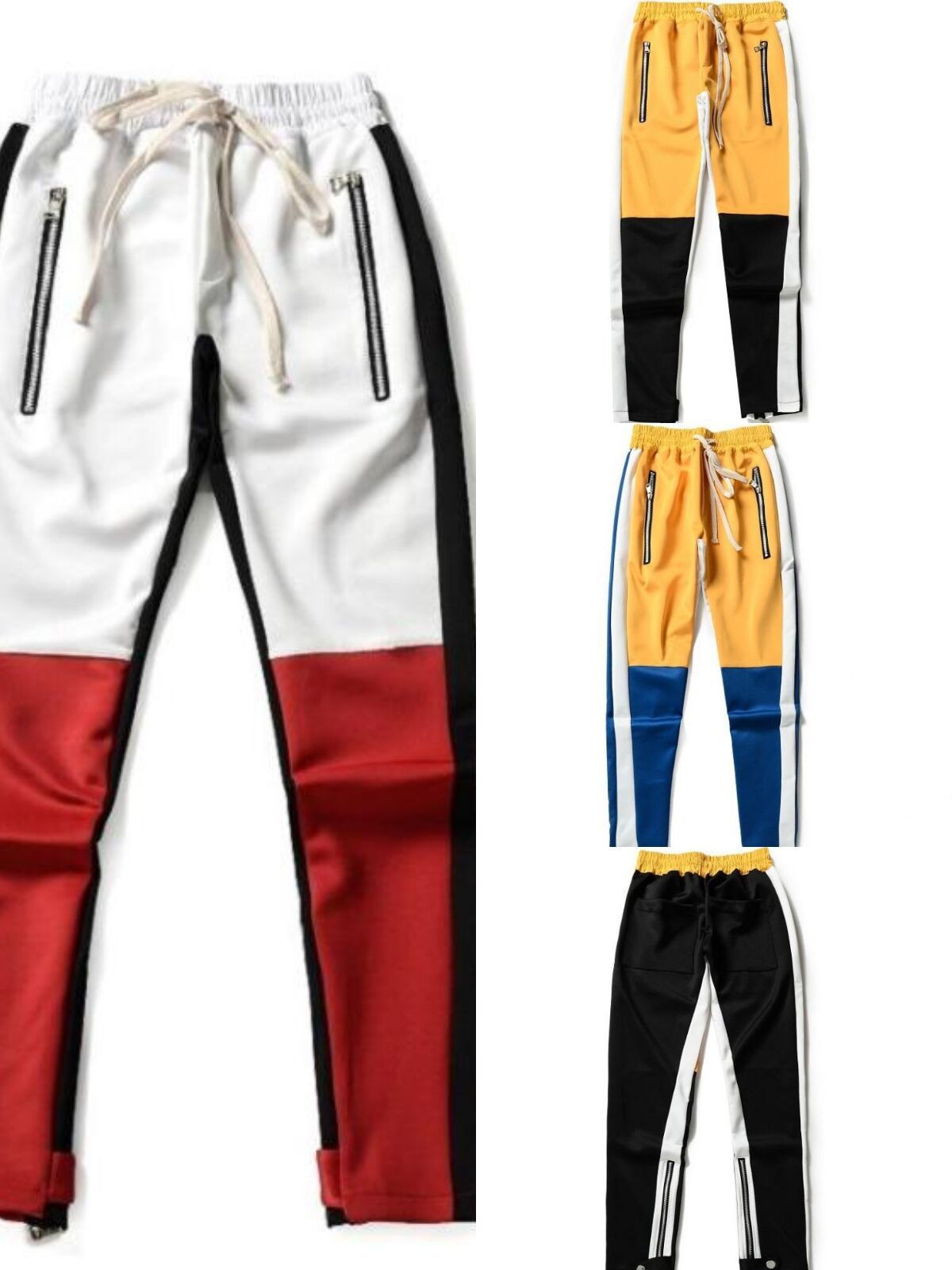 men’s patchwork skinny pants cotton joggers sweatpants mens casual fashion pencil trousers yellow red zipper trackpants slacks