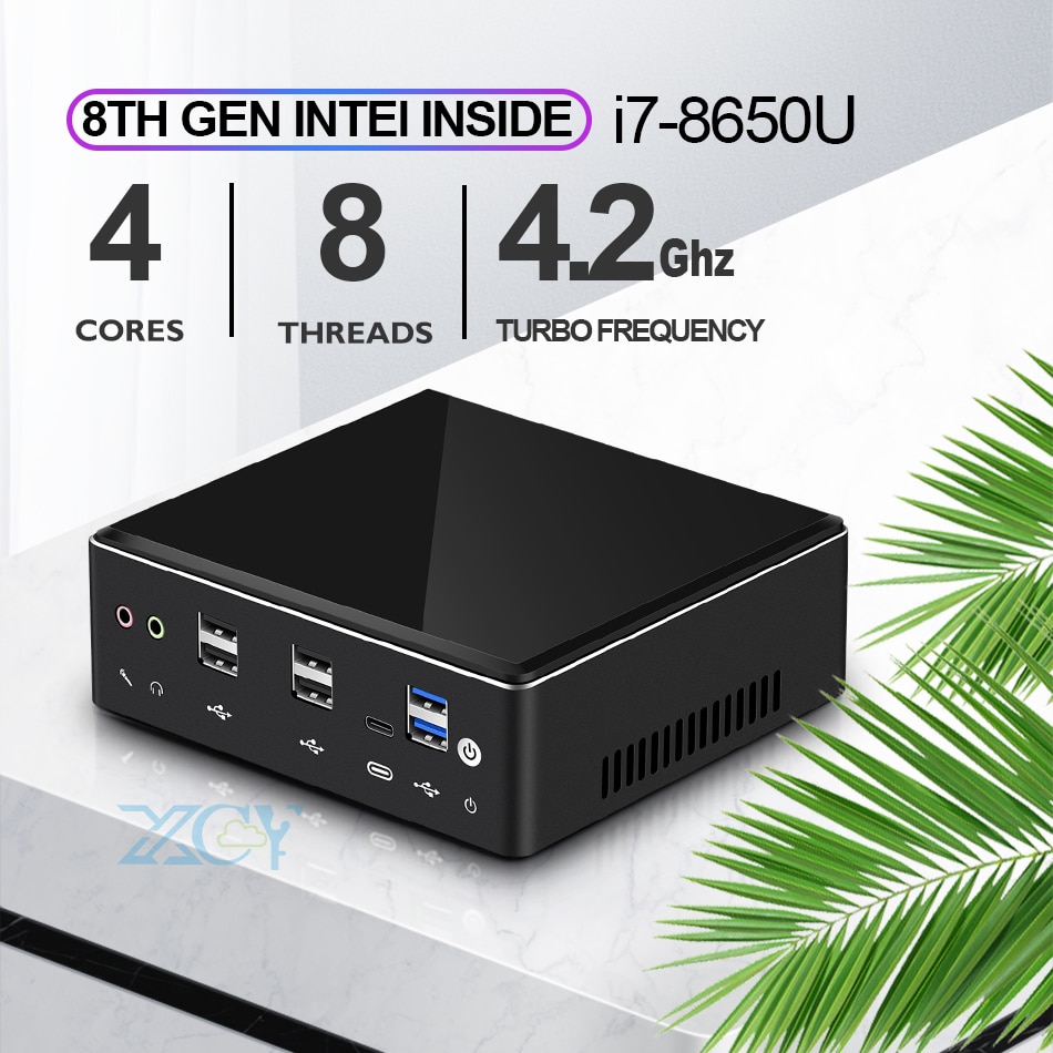 Mini PC Intel Core i7 7500U 8650U Computer Windows 10 2*DDR4 M.2 SSD 8*USB DP Type-C 2*LAN WiFi 4K HTPC Micro Desktop NUC Minipc