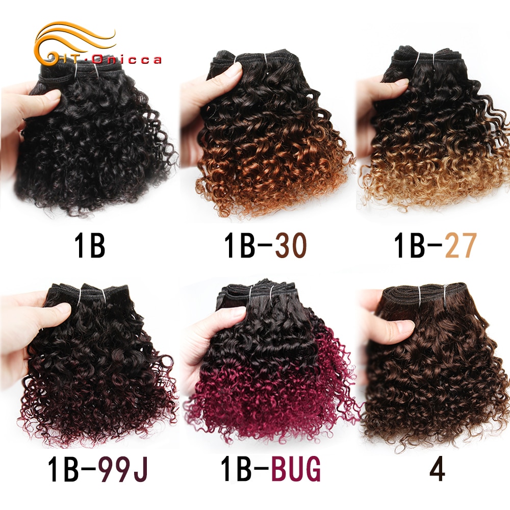 Mongolian Kinky Curly Hair Short Curly Human Hair Bundles With Closure 1B/27/30/99J Ombre Bundles With Closure For Black Women