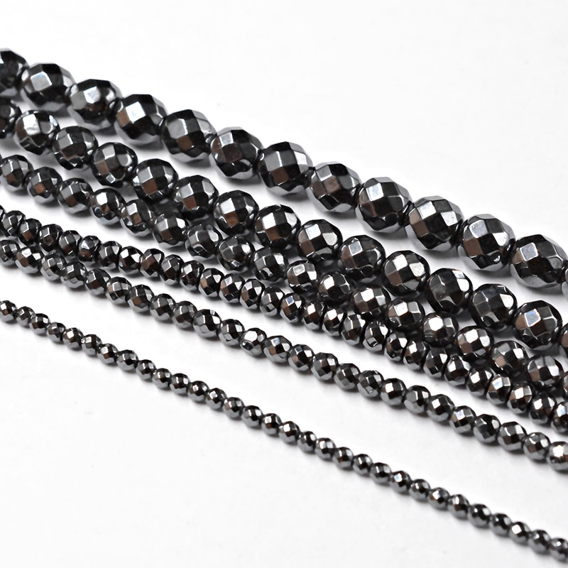 Natural Stone Beads Faceted Hematite Beads for Jewelry Making 15inch 2/3/4/6/8/10/12mm Round Bedas Diy Necklace Bracelet