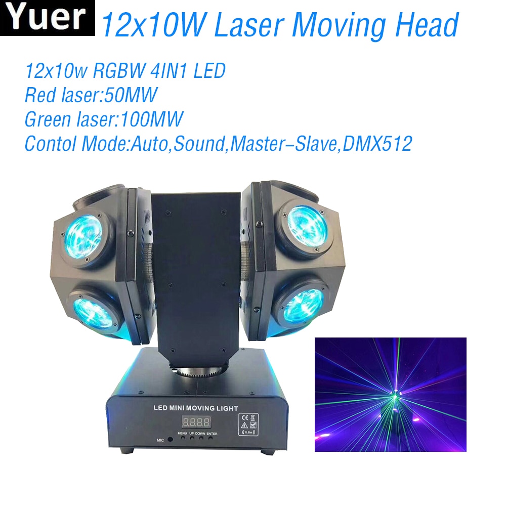 New 12x10W RGBW 4IN1 LED Beam Laser Moving Head Light DMX512 Disco Ball Sound Party Light DJ Bar Club Moving Head lights
