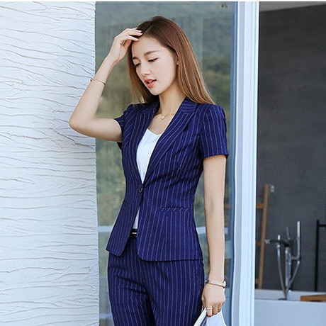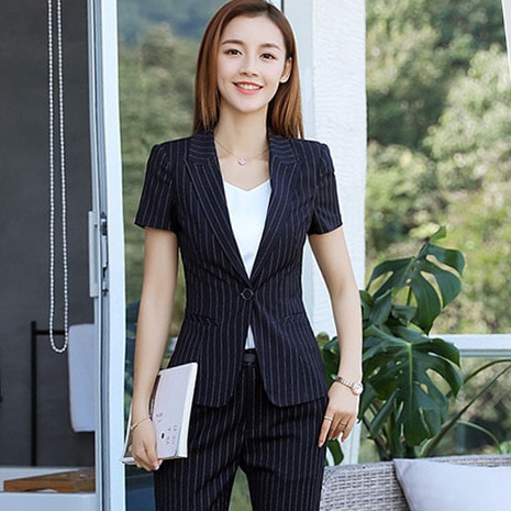 New 2020 Summer Women Formal Pant Suits Short Sleeve Blazer and Pants Office Ladies Business Work Wear Suits Set 2 Pieces OL Top