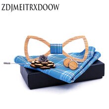 New design Wooden tie Pocekt Square Cufflinks Fashion wood bow tie wedding dinne Handmade corbata Wooden Ties Gravata set M354