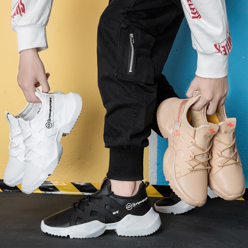 New men’s casual sports shoes soft leather soft sole comfortable running shoes thick sole shock absorption lightweight fashion