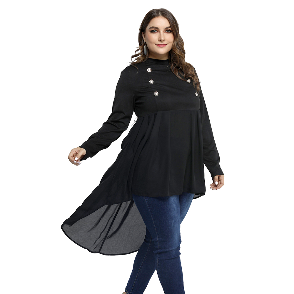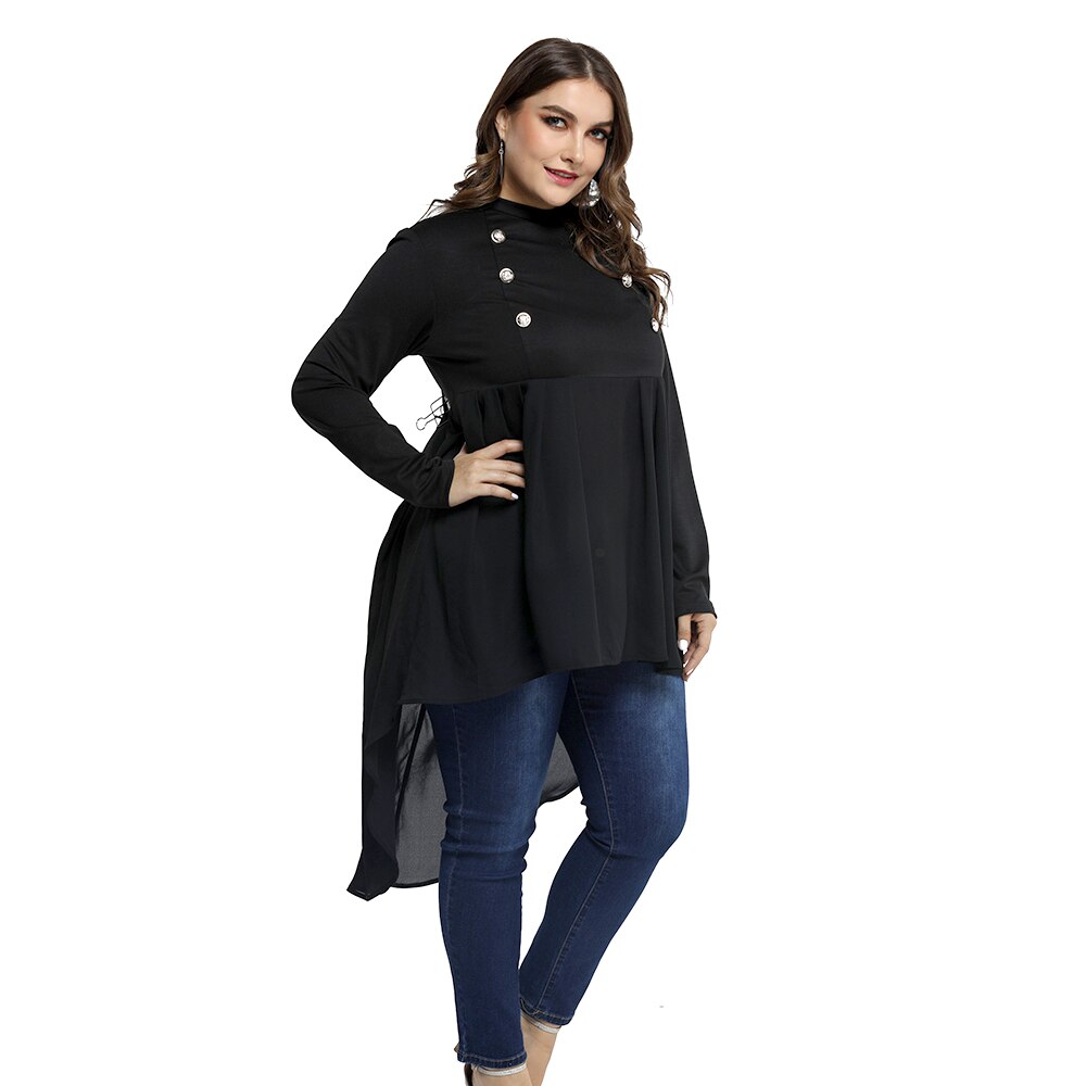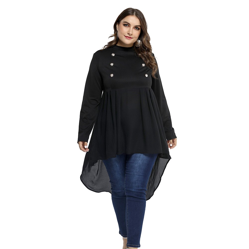 New Plus Size Women Tops Asymmetric Short Front Long Back Double Breasted Blouse Autumn Women Casual Stand Collar L-6XL D30