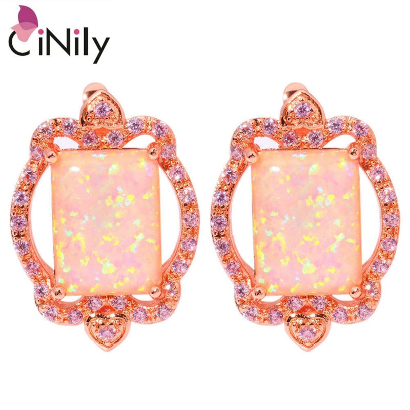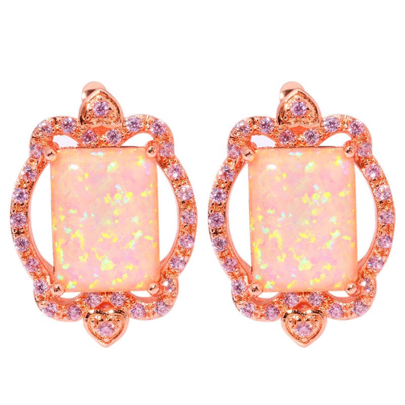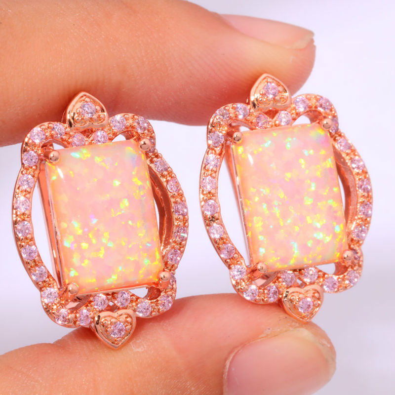 Pink Fire Opal Pink Topaz Silver Rose Gold Earrings Wholesale Retail For Fashion Women Jewelry Hoop Earrings 1″ OH3922
