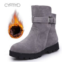 Plus Size 43-44 Fashion Suede Leather Ankle Boots Woman Buckle Strap Non Slip Snow Boots Women Rubber Solid Winter Shoes Woman