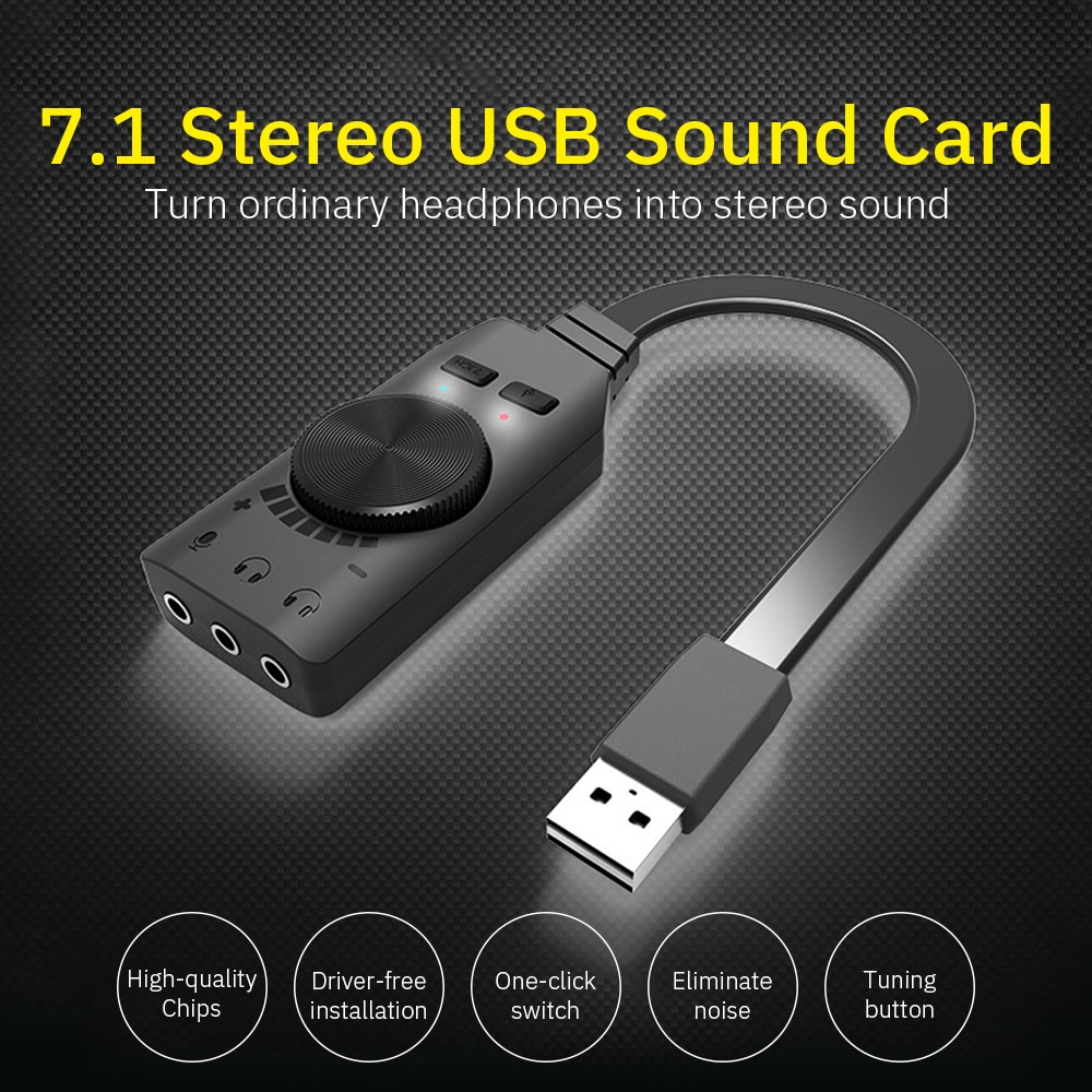 Profession 7.1 Channel External Sound Card for Computer Audio Interface Microphone USB Sound Card for Gaming Headset Gamer