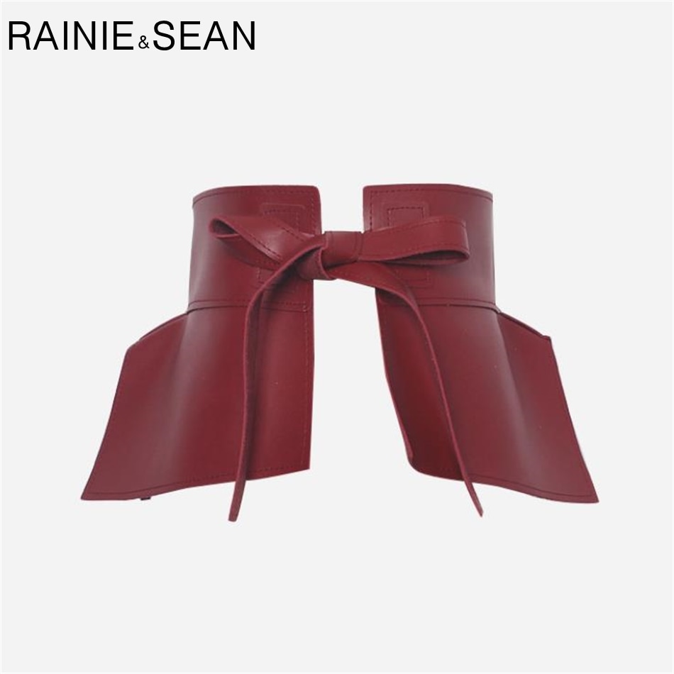 RAINIE SEAN Leather Belt Women Wide Cummerbund Ladies Waist Belts Red Novelty Self Tie Female Leather Skirt Corset Accessories