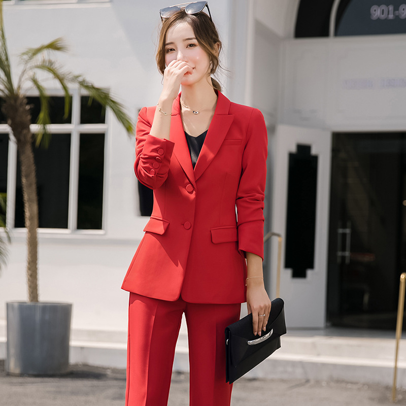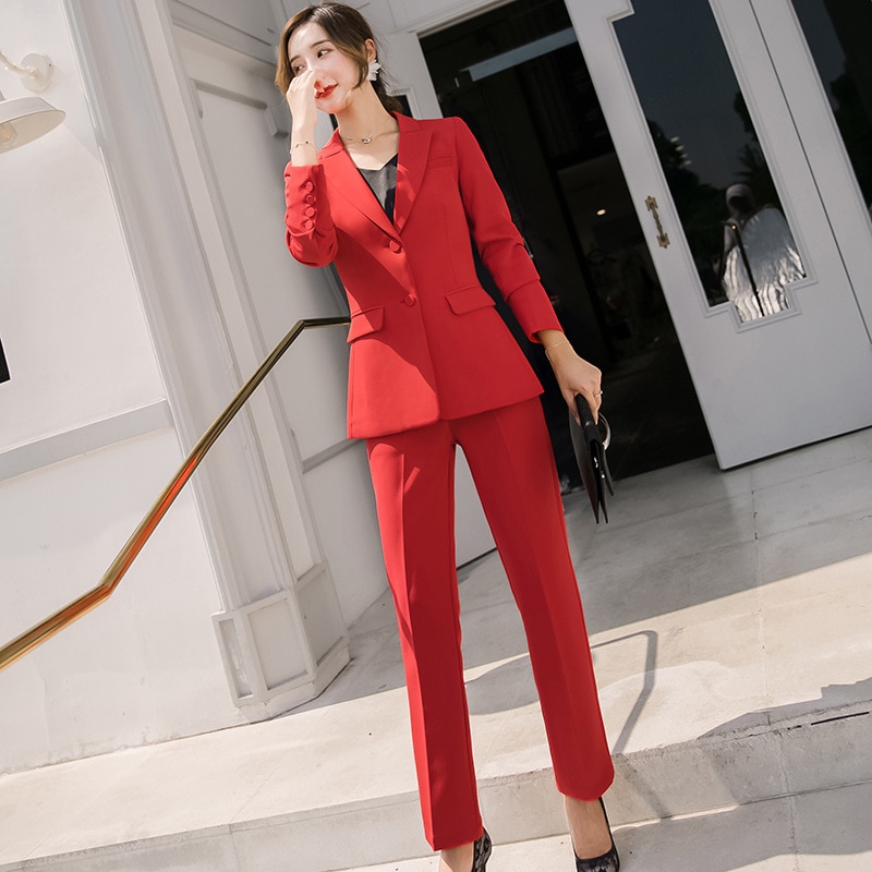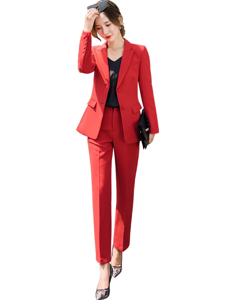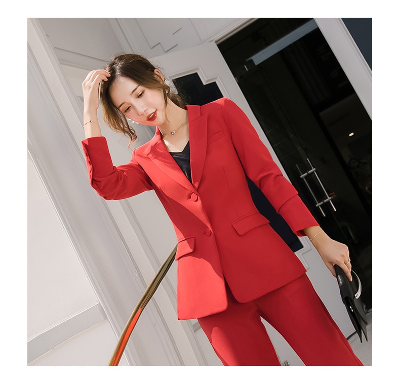 Red Black Female elegant Women’s Pants Suits trouser suit dress jacket costumes office wear clothing two piece set top and pants