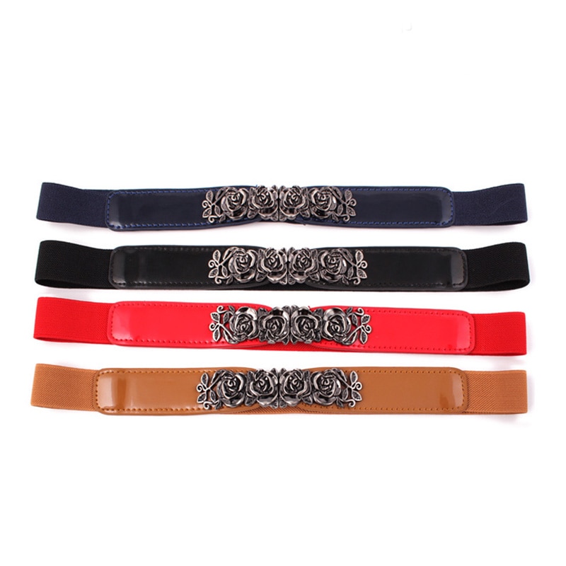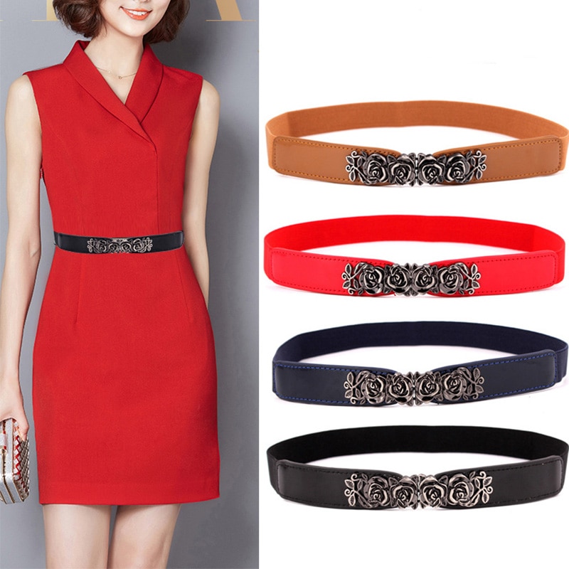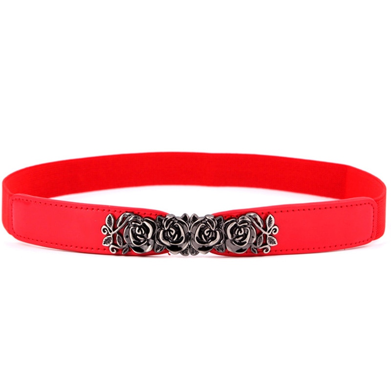 Retro Women Elastic Stretch Leather Belts Designer Ladies Rose Buckle Decoration Belt Girl Clothes Dress Corset Waistband