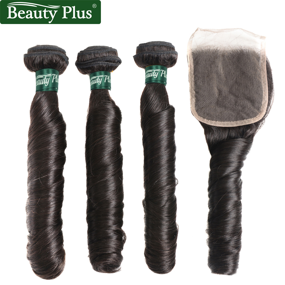 Romance Curly Hair Bundles With Closures Brazilian Human Hair Beauty Plus Non-Remy Spring Egg Curly Hair 3 Bundles With Closures