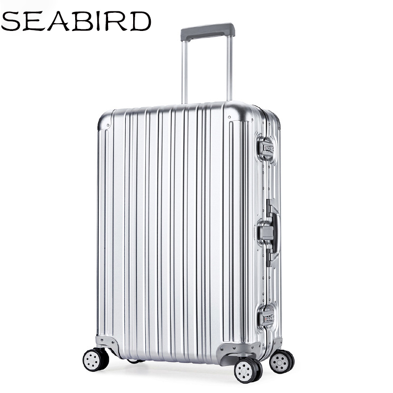 SEABIRD Luxury Aluminum Magnesium Alloy Travel Trolley Luggage Men Full Metal Case Business Suitcase On Wheels Women Brand Rose