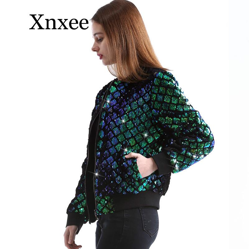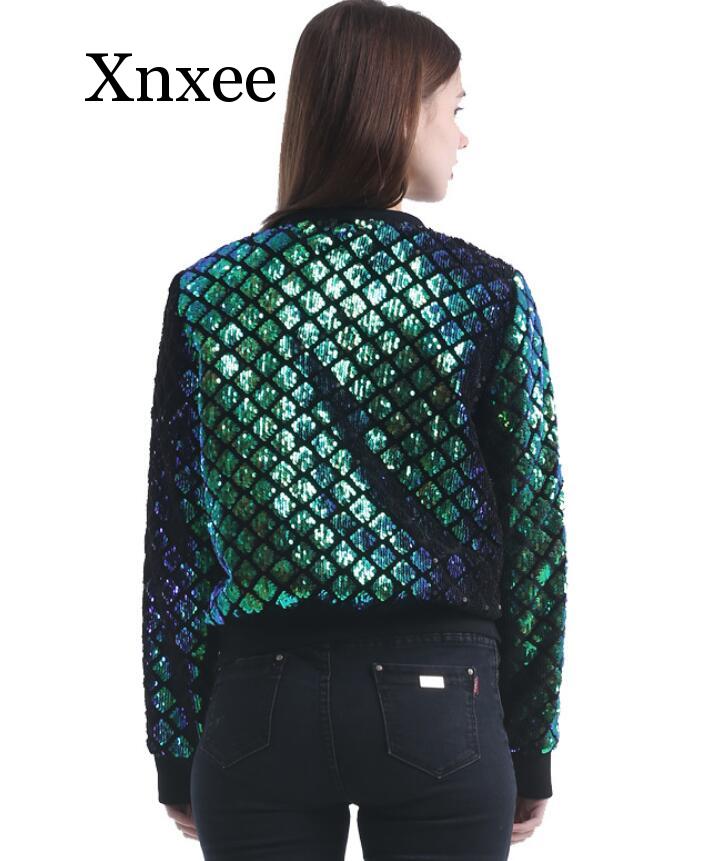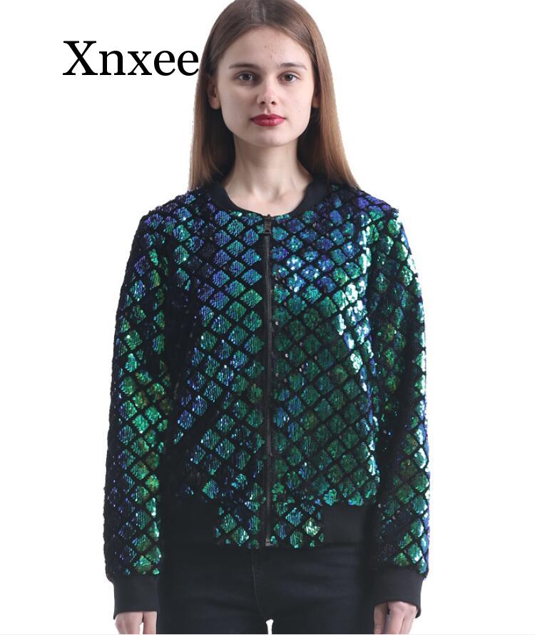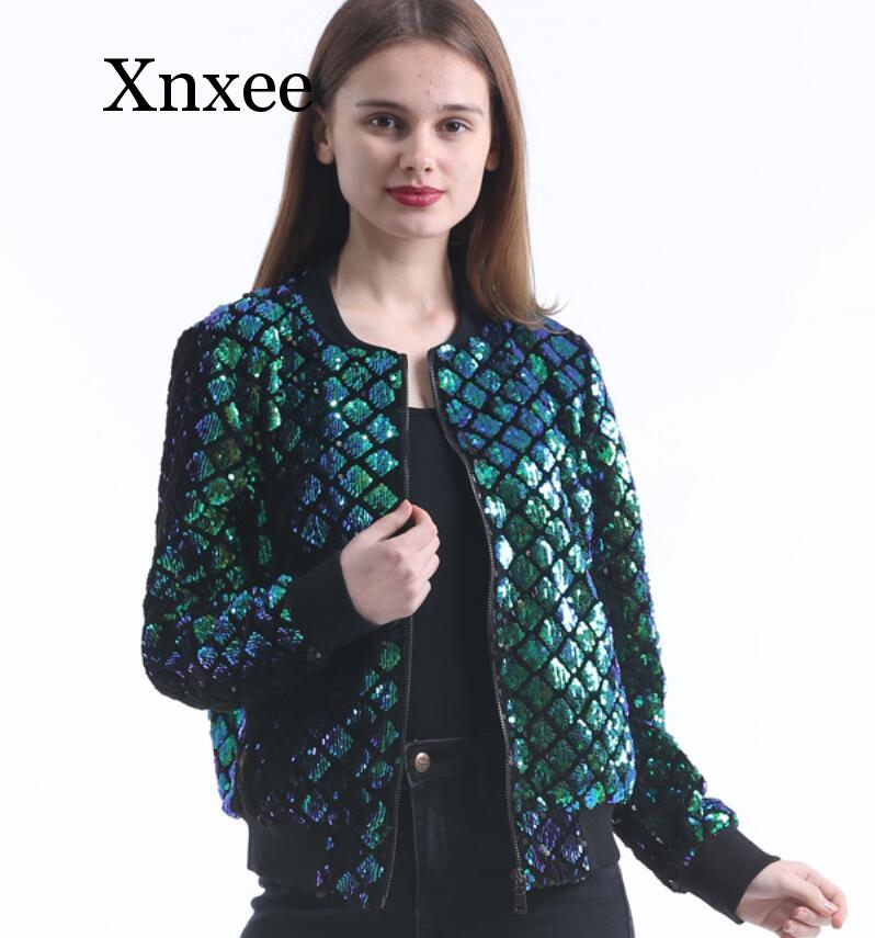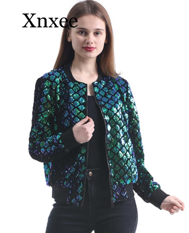 Sequins New Spring Autumn Women Sequin Coat Green Bomber Jacket Long Sleeve Zipper Streetwear Jacket Preppy Casual Basic Coat