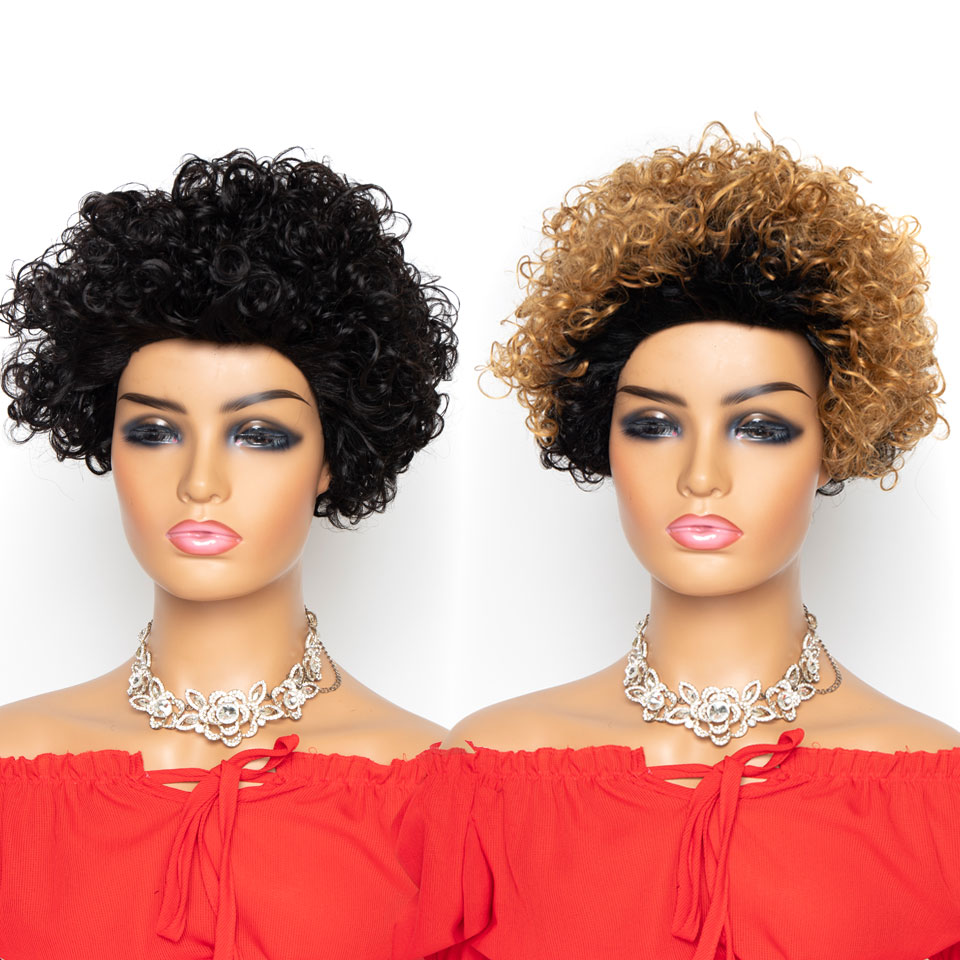 Short Curly Bob Wigs Peruvian Jerry Curl Human Hair Wigs for Woman Remy Glueless Machine Made Wig Ombre Blonde T1B/27 Wigs