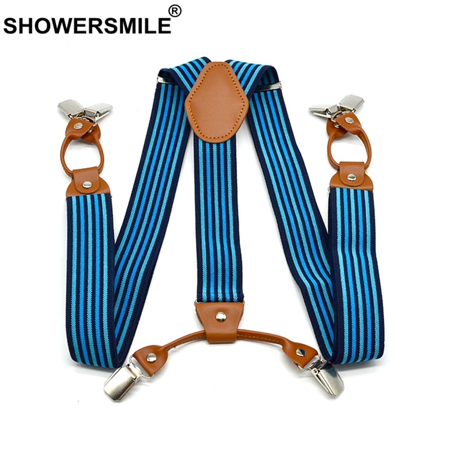 SHOWERSMILE Designer Suspenders Men Braces for Trousers Striped Shirt Stays Business Suspenders 6 Clips Pants Suspender 120 Cm