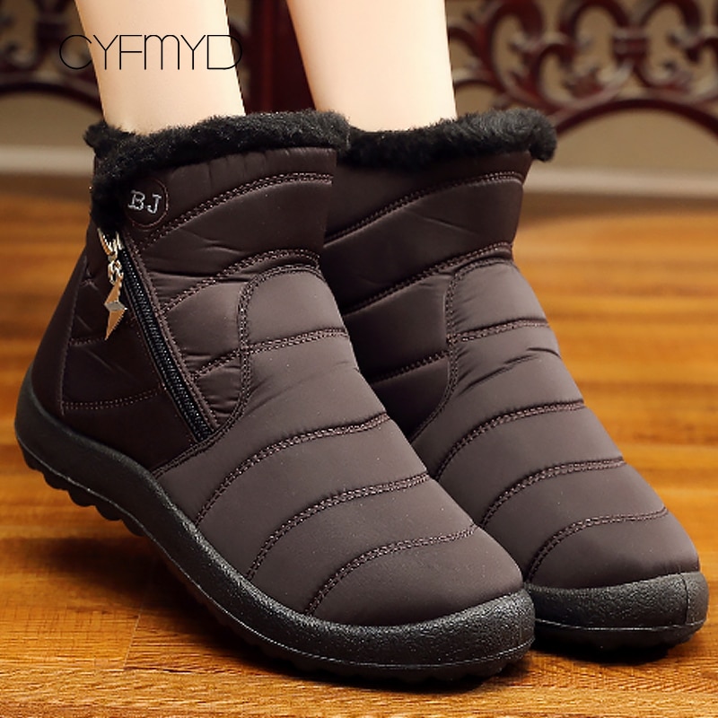 Snow boots women plush zip wedge shoes winter waterproof plus size 9-10.5 non-slip soft ankle boots for women 2019
