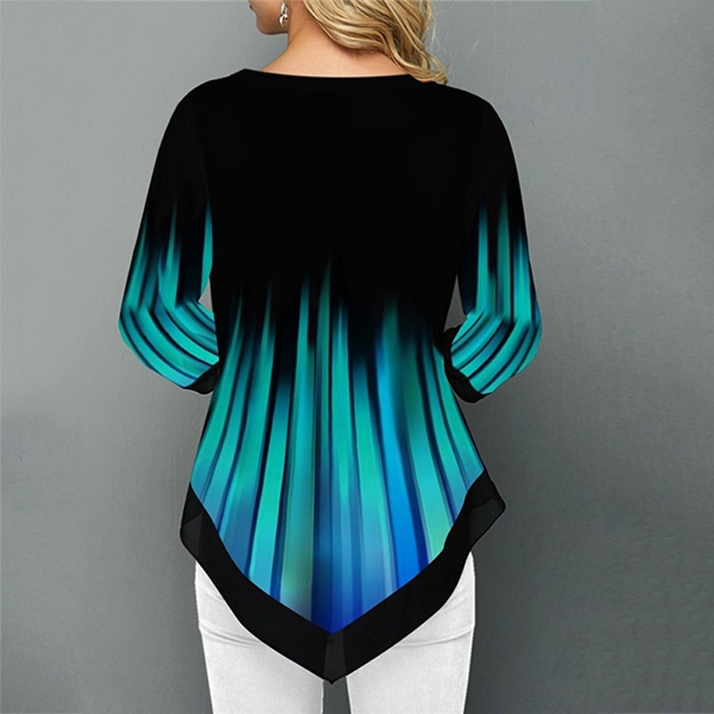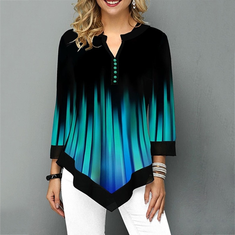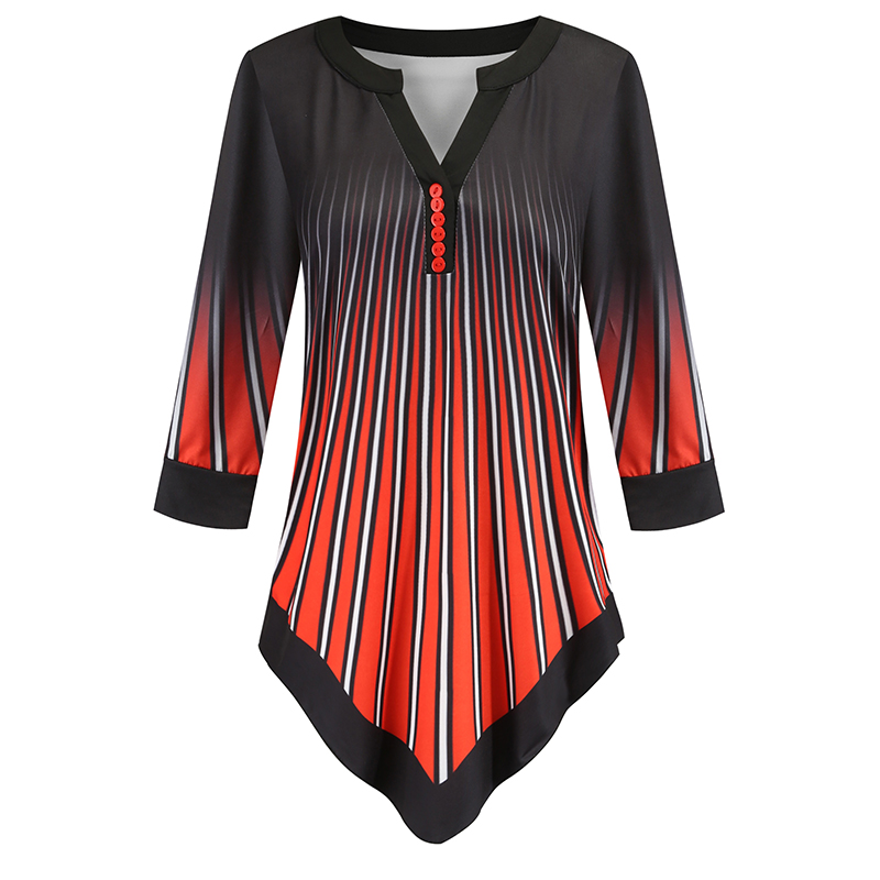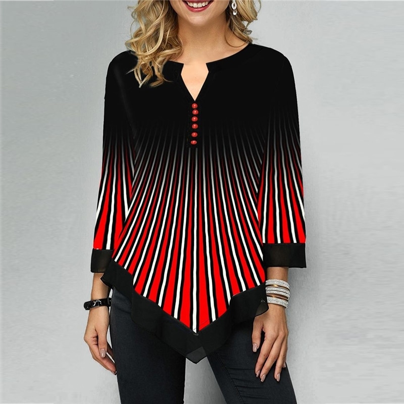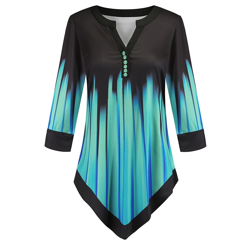 Striped Patchwork Women Shirts Blouses Spring Summer Three Quarter Sleeve Green Blouse Shirt Women Plus Size V Neck Tunic 5XL