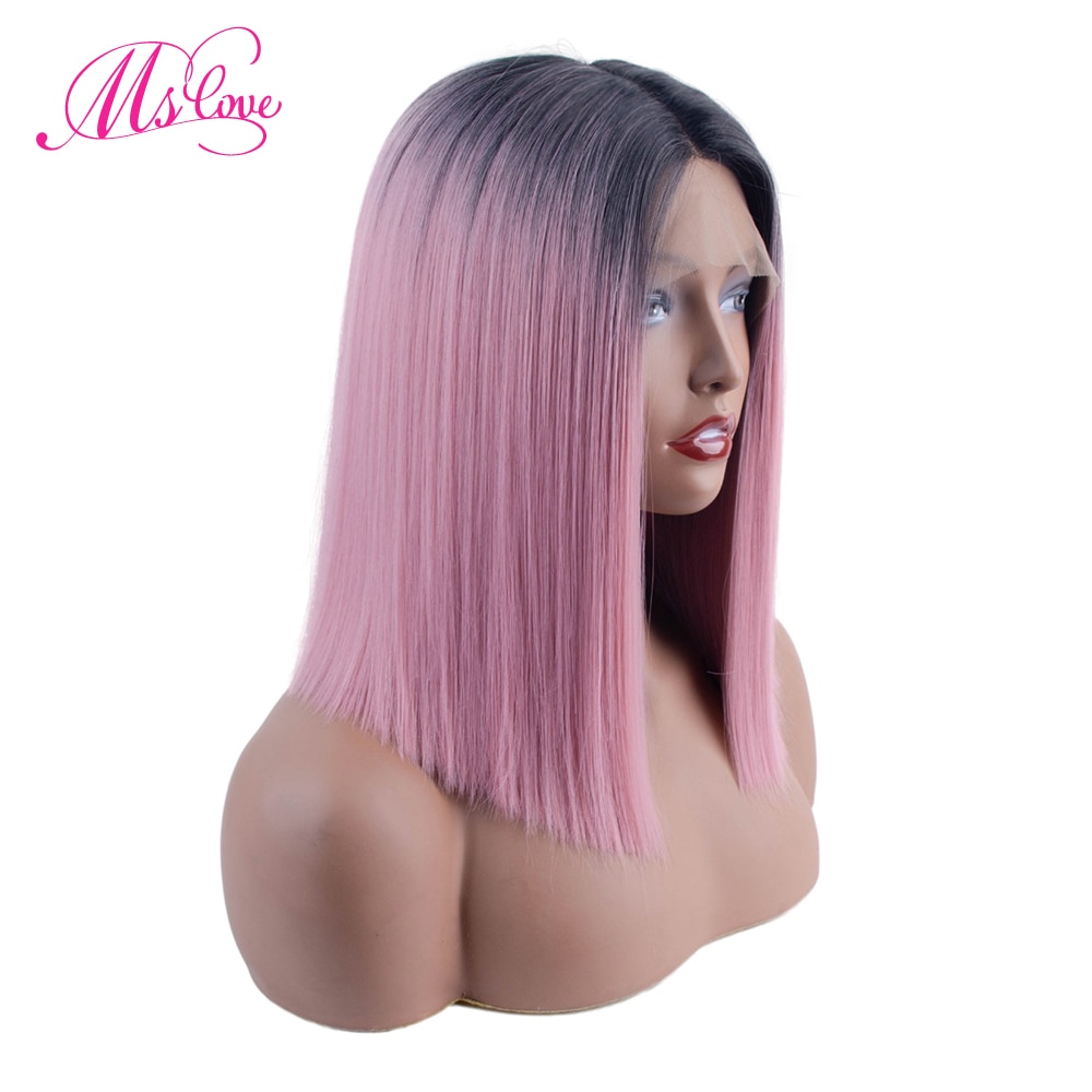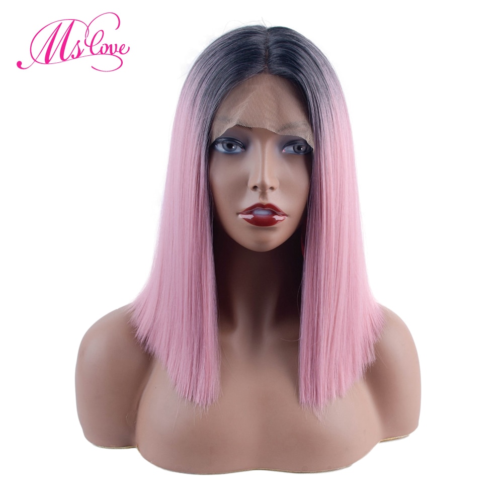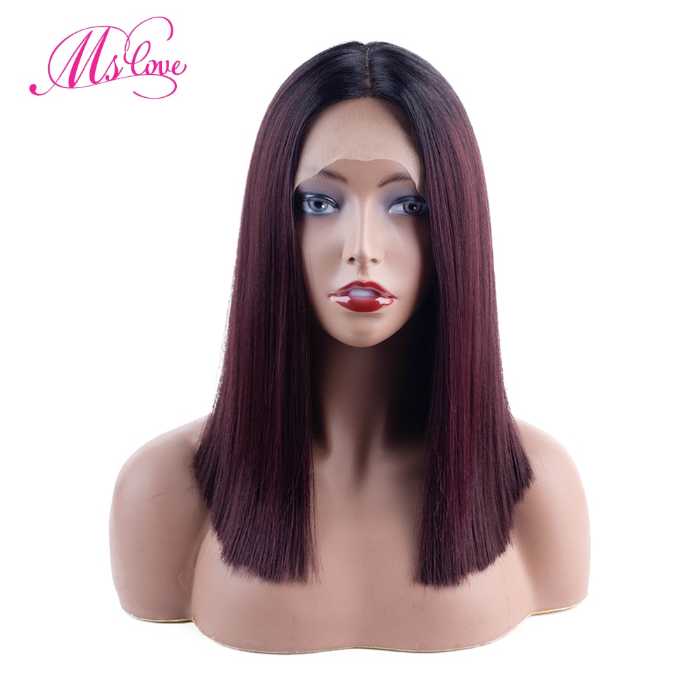 Synthetic Lace Front Wig For Women Straight Bob Cosplay Wig Ombre 1B/99j Pink Blue Short 14 Inch Burgunday 99J Color Ms Love