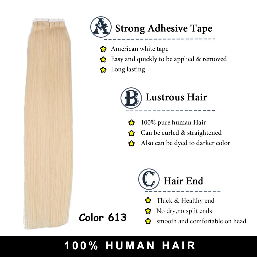 Toysww Tape in Hair Machine Remy Human Hair Extensions Color 613 50/100 Gram Per Package Glue Tape on Hair Extension