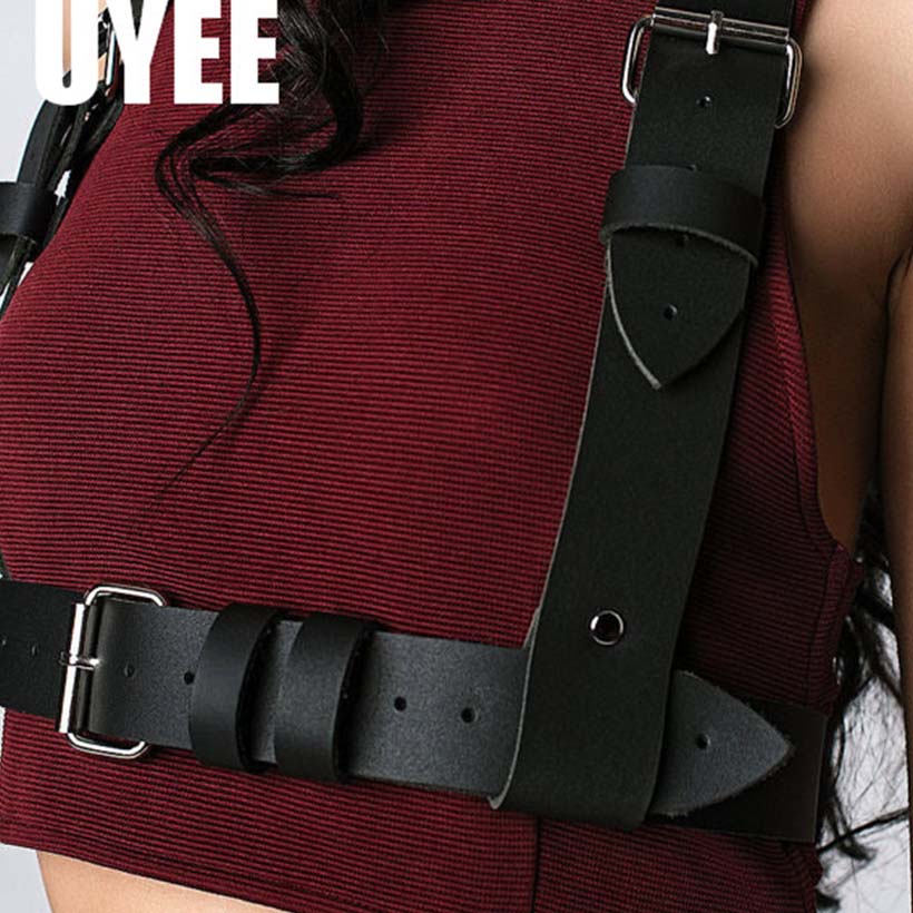 UYEE Pu leather Sexy Belt Lingerie For Adult Adjustable Body Bondage Cage Bra Harness Suspender Rave Bra Waist Wide Strap LB-009