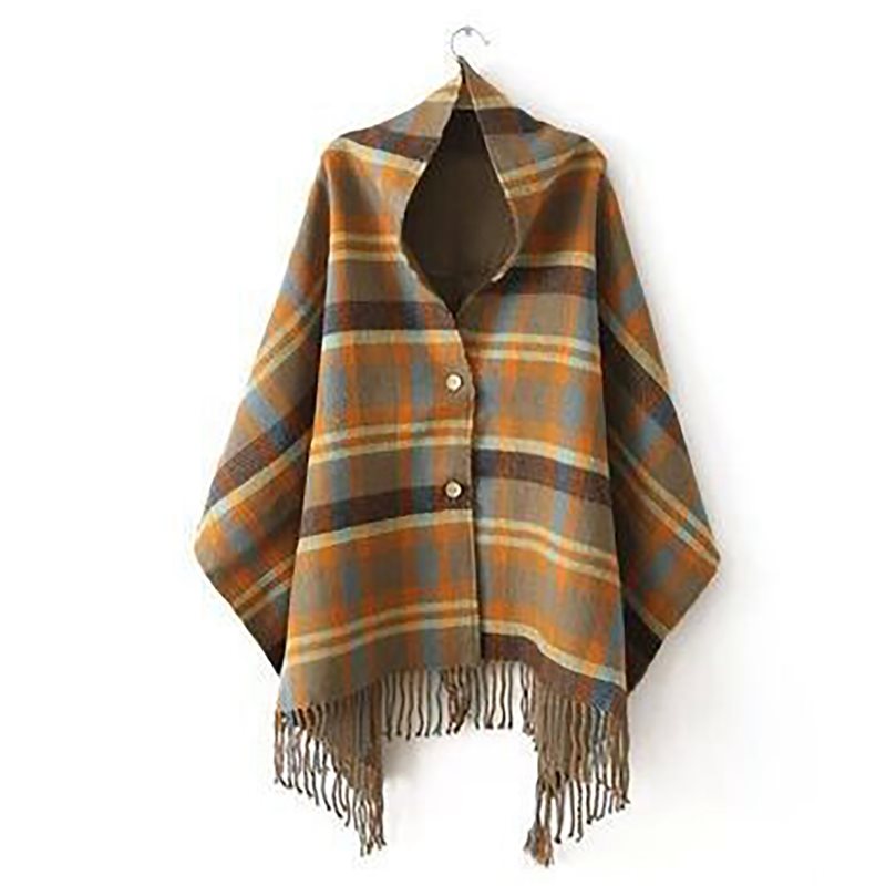 Vintage fashion plaid Cape coat poncho Women ponchos elegant boho tassel scarf winter warm imitation cashmere wrap capes 2019