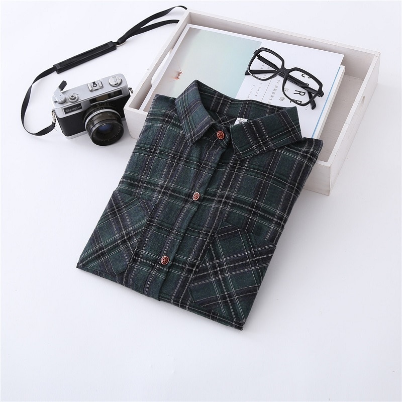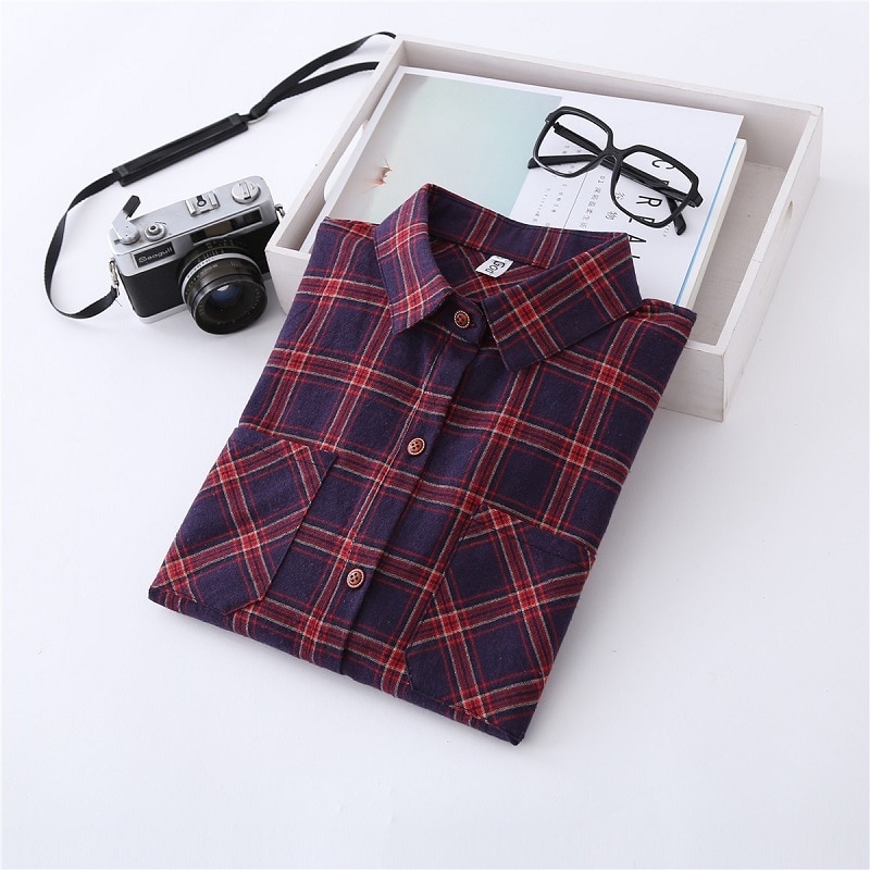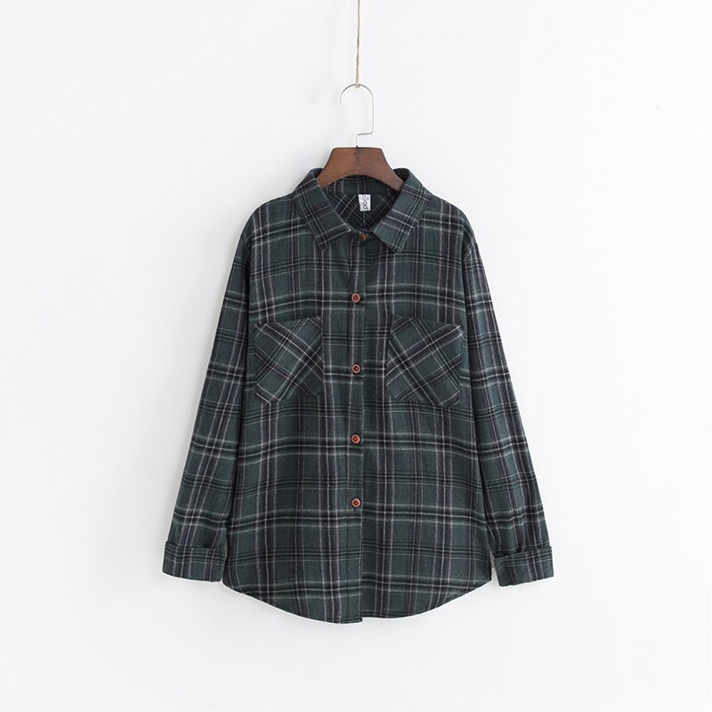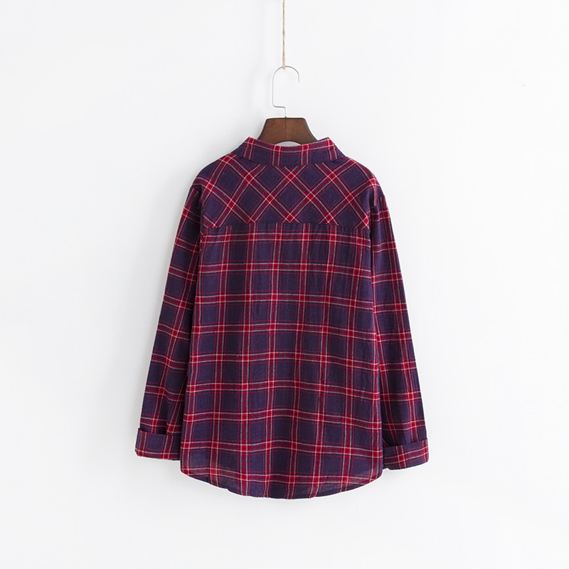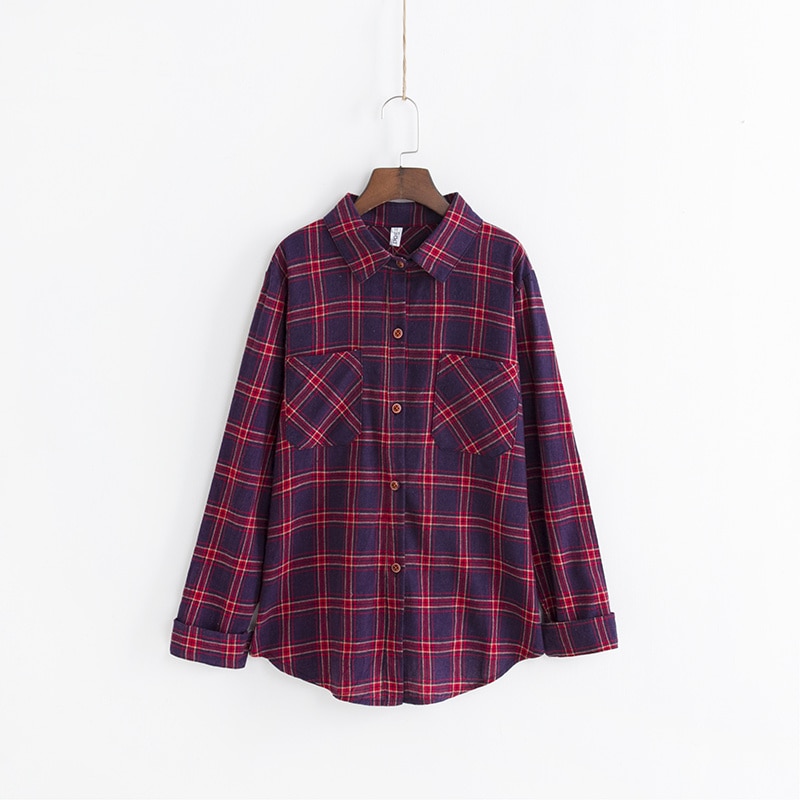 Vintage OL Style Women’s shirt Casual Plaid Tops Long Sleeve Turn-down Collar Women blouse two Pockets Button Down Blouses